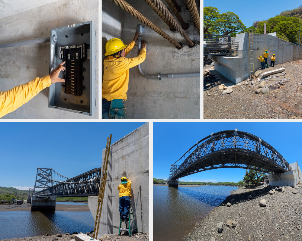 La iniciativa contempla el diseño integral del sistema de iluminación del puente, así como la instalación de un sistema de protección eléctrica (puesta a tierra) para la base de medición y la iluminación, que ayuda a prevenir el robo de cables y resguardar el sistema; centro de carga, tuberías integradas a la estructura, postes y luminarias.